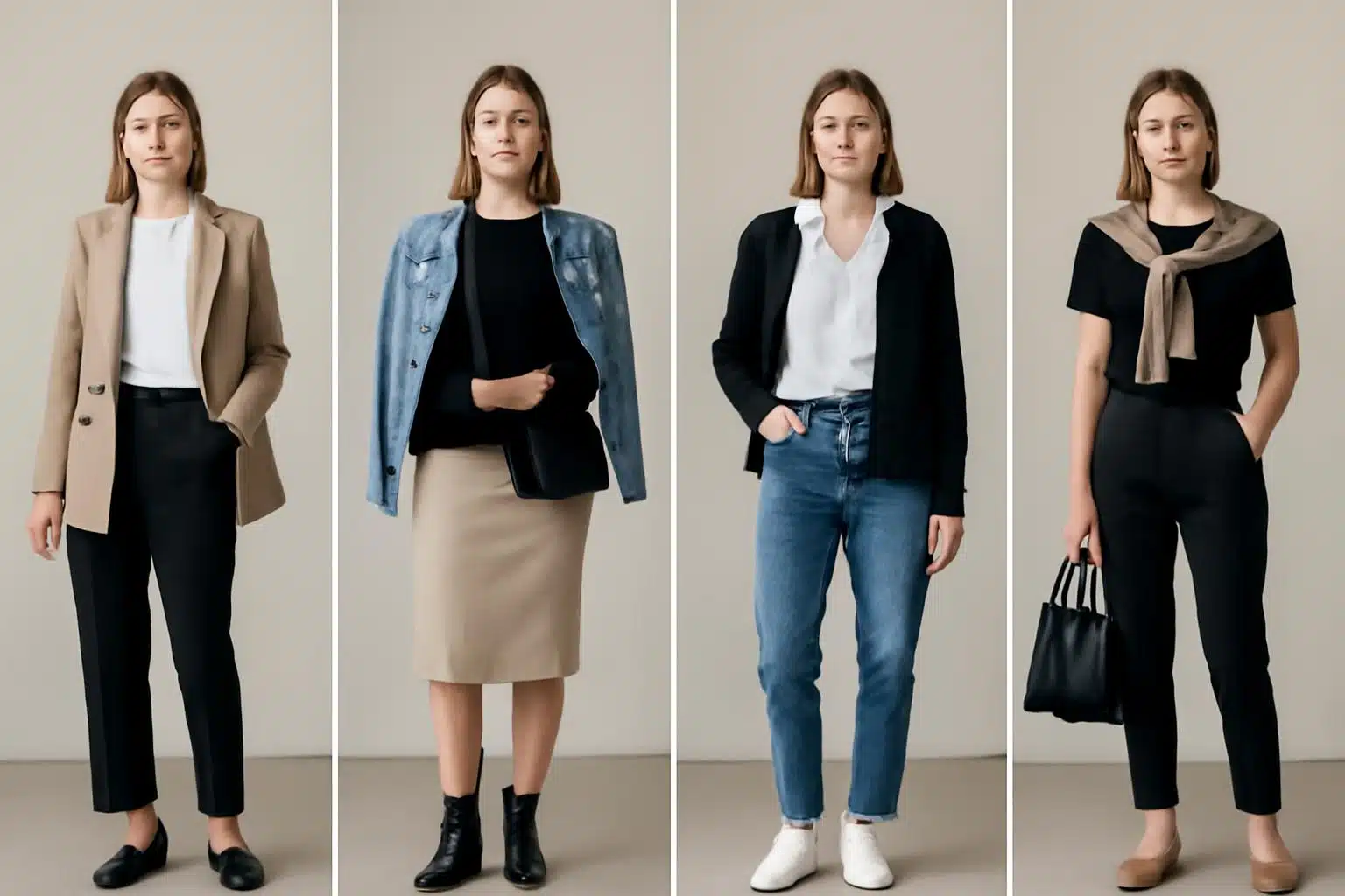 Magia kapsułowej garderoby tkwi w łatwym miksowaniu. Oto kilka propozycji stylizacji z 15 opisanych elementów: