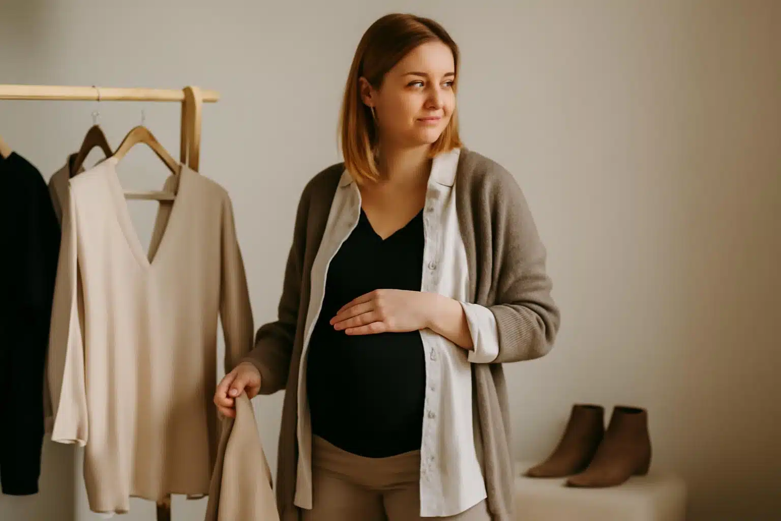 Tworząc funkcjonalną szafę ciążową, kieruj się kilkoma prostymi zasadami. Po pierwsze, uniwersalność. Wybieraj kolory bazowe: czerń, biel, granat, odcienie beżu i szarości oraz proste kroje, które łatwo ze sobą zestawisz. Po drugie, jakość zamiast ilości. Kilka dobrze skrojonych ubrań z dobrych materiałów posłuży ci dłużej i lepiej niż pół szafy przypadkowych ciuchów. Po trzecie, myśl o warstwowaniu. Lekkie topy, kardigany i okrycia wierzchnie pozwolą ci dostosować strój do temperatury i okazji, tworząc nowe kombinacje z tej samej bazy. To podstawa, by stworzyć uniwersalną szafę.
