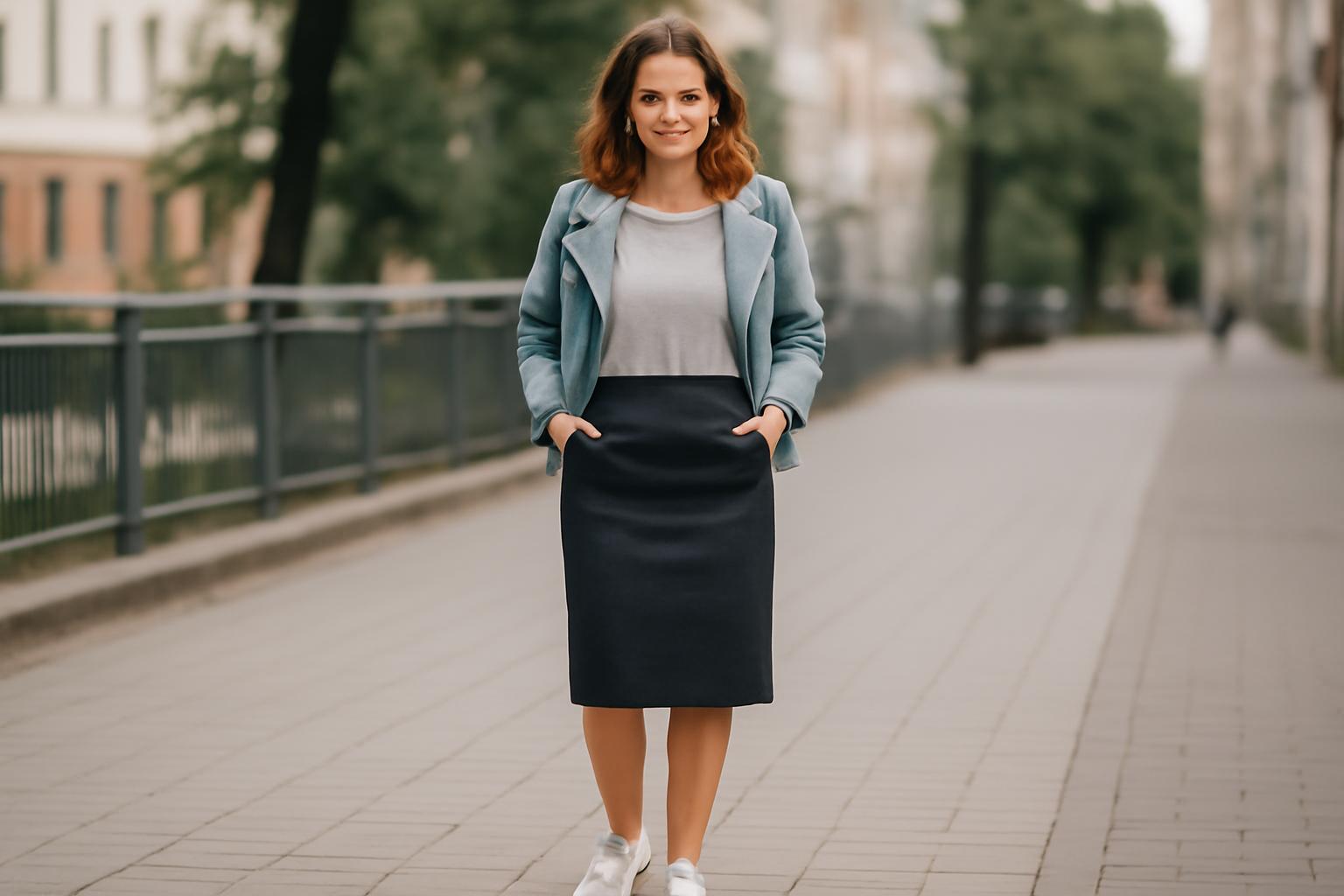 Ołówkowa spódnica z szafy sprzed ciąży może wydawać się zbyt formalna. Przełam ją!