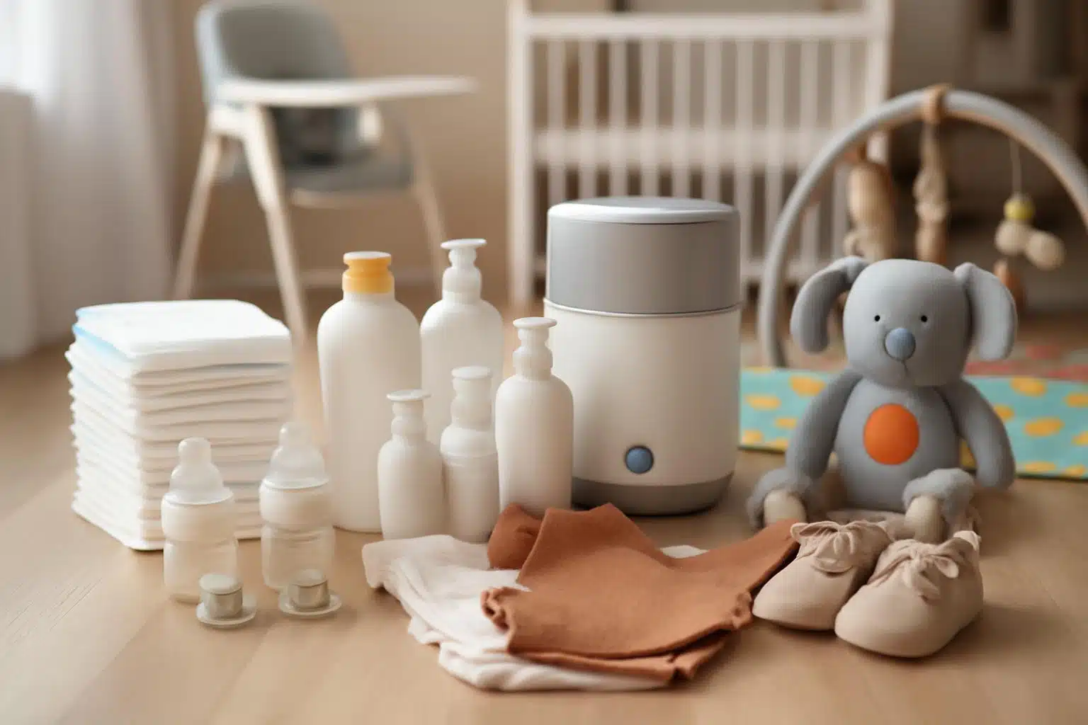 Must-have na start: fotelik samochodowy, wózek, bezpieczne miejsce do spania, mały zapas pieluch (2 rozmiary), 5-7 body/pajacyków, oliwka, śpiworek, podstawowy płyn do kąpieli.